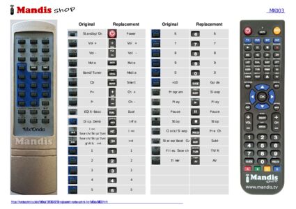 This remote control fully replaces your MX003 and offers all the functions of the original.