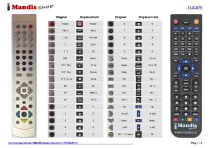 A document is included to help you use the new remote control easily, showing the button correspondence.