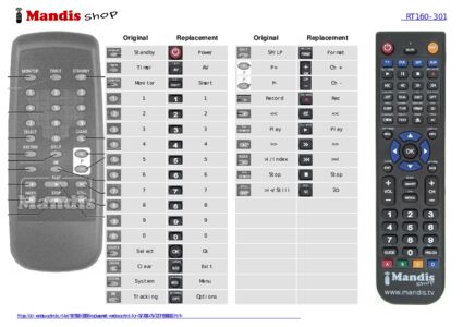 Below, we will show you the correspondence between each button on the original remote control and the button that performs the same function on the replacement remote control. In some cases, you may need to press the SHIFT key before pressing another button to perform certain actions. These additional functions are often not widely used and are included to facilitate understanding of the replacement remote control, or because the original remote control has more buttons than its equivalent.