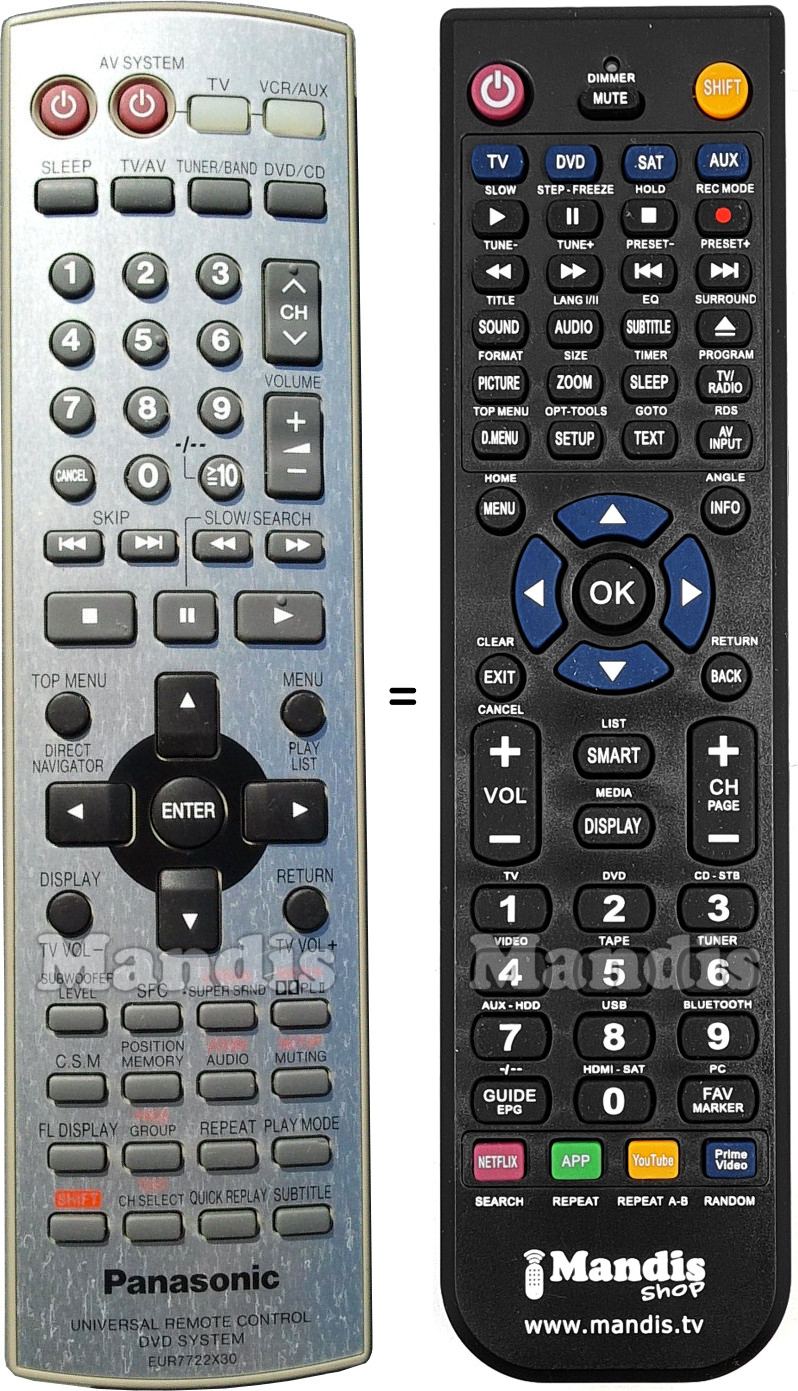 This remote control fully replaces your EUR7722X30 and offers all the functions of the original.