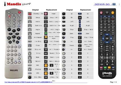 Below, we will show you the correspondence between each button on the original remote control and the button that performs the same function on the replacement remote control. In some cases, you may need to press the SHIFT key before pressing another button to perform certain actions. These additional functions are often not widely used and are included to facilitate understanding of the replacement remote control, or because the original remote control has more buttons than its equivalent.