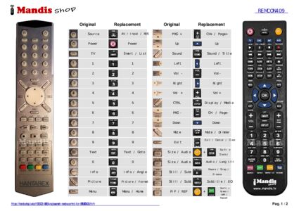 Below, we will show you the correspondence between each button on the original remote control and the button that performs the same function on the replacement remote control. In some cases, you may need to press the SHIFT key before pressing another button to perform certain actions. These additional functions are often not widely used and are included to facilitate understanding of the replacement remote control, or because the original remote control has more buttons than its equivalent.