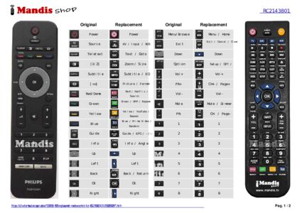 A document is included to help you use the new remote control easily, showing the button correspondence.