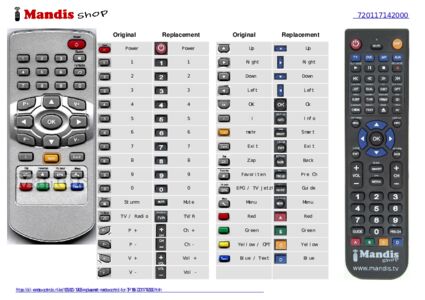 Below, we will show you the correspondence between each button on the original remote control and the button that performs the same function on the replacement remote control. In some cases, you may need to press the SHIFT key before pressing another button to perform certain actions. These additional functions are often not widely used and are included to facilitate understanding of the replacement remote control, or because the original remote control has more buttons than its equivalent.