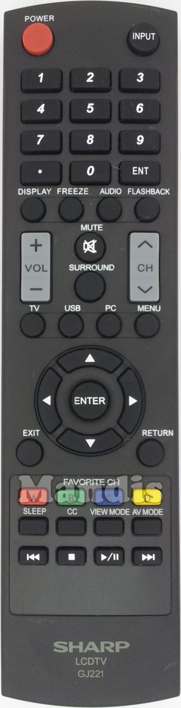 original remote control GJ221 used for televisions for the brand Sharp. This is an original remote control.