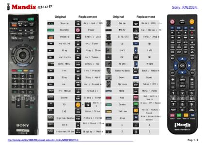 This remote control fully replaces your RM-ED034 (148791411) and offers all the functions of the original.