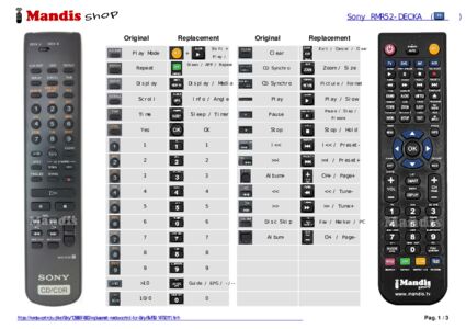 Below, we will show you the correspondence between each button on the original remote control and the button that performs the same function on the replacement remote control. In some cases, you may need to press the SHIFT key before pressing another button to perform certain actions. These additional functions are often not widely used and are included to facilitate understanding of the replacement remote control, or because the original remote control has more buttons than its equivalent.