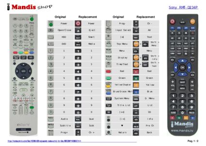 This remote control fully replaces your RMT-D234P (147965812) and offers all the functions of the original.