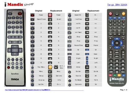 Below, we will show you the correspondence between each button on the original remote control and the button that performs the same function on the replacement remote control. In some cases, you may need to press the SHIFT key before pressing another button to perform certain actions. These additional functions are often not widely used and are included to facilitate understanding of the replacement remote control, or because the original remote control has more buttons than its equivalent.