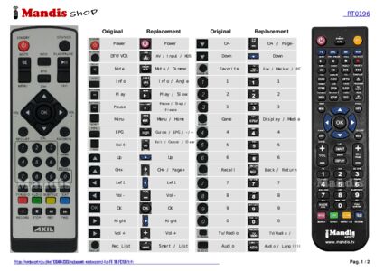 This remote control fully replaces your RT 196 (RT0196) and offers all the functions of the original.
