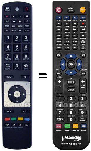 Below, we will show you the correspondence between each button on the original remote control and the button that performs the same function on the replacement remote control. In some cases, you may need to press the SHIFT key before pressing another button to perform certain actions. These additional functions are often not widely used and are included to facilitate understanding of the replacement remote control, or because the original remote control has more buttons than its equivalent.