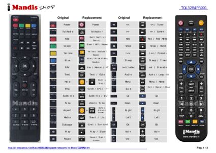 Below, we will show you the correspondence between each button on the original remote control and the button that performs the same function on the replacement remote control. In some cases, you may need to press the SHIFT key before pressing another button to perform certain actions. These additional functions are often not widely used and are included to facilitate understanding of the replacement remote control, or because the original remote control has more buttons than its equivalent.