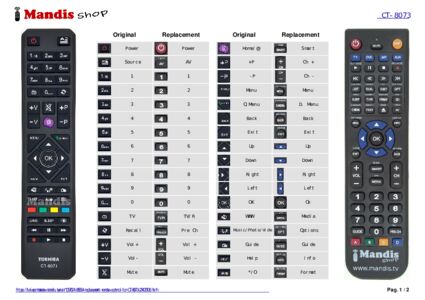 This remote control fully replaces your CT-8073 (23405106) and offers all the functions of the original.