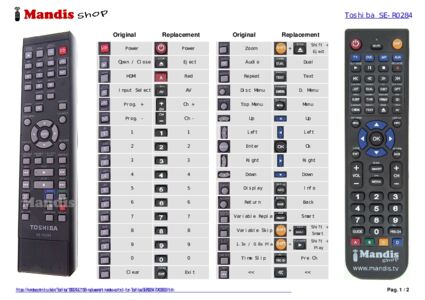 Below, we will show you the correspondence between each button on the original remote control and the button that performs the same function on the replacement remote control. In some cases, you may need to press the SHIFT key before pressing another button to perform certain actions. These additional functions are often not widely used and are included to facilitate understanding of the replacement remote control, or because the original remote control has more buttons than its equivalent.