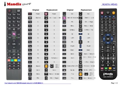 A document is included to help you use the new remote control easily, showing the button correspondence.