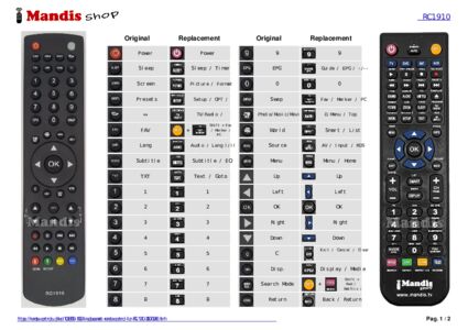 A document is included to help you use the new remote control easily, showing the button correspondence.