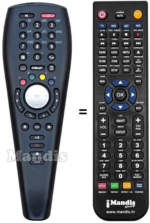 Télécommande qui remplace celle d'origine car elle possède les mêmes fonctions.