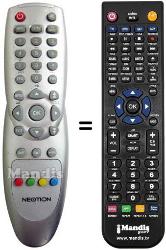 Télécommande qui remplace celle d'origine car elle possède les mêmes fonctions.