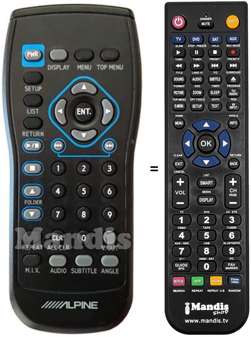 Télécommande qui remplace celle d'origine car elle possède les mêmes fonctions.