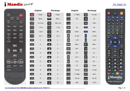 Accueil > Marques > Télécommande pour TV-5620-52 > Répartition interactive des touches TV-5620-52
