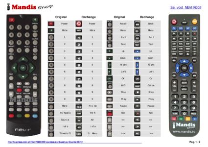 Un document est inclus pour vous aider à utiliser facilement la nouvelle télécommande, en indiquant la correspondance des boutons.