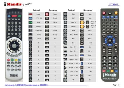Un document est inclus pour vous aider à utiliser facilement la nouvelle télécommande, en indiquant la correspondance des boutons.