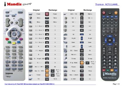 Un document est inclus pour vous aider à utiliser facilement la nouvelle télécommande, en indiquant la correspondance des boutons.