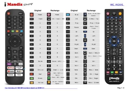 Un document est inclus pour vous aider à utiliser facilement la nouvelle télécommande, en indiquant la correspondance des boutons.