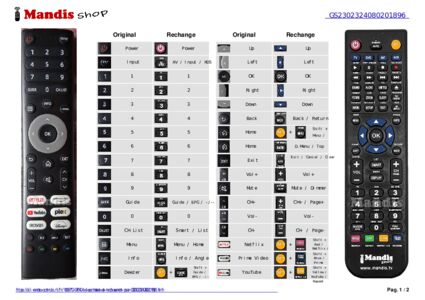 Un document est inclus pour vous aider à utiliser facilement la nouvelle télécommande, en indiquant la correspondance des boutons.