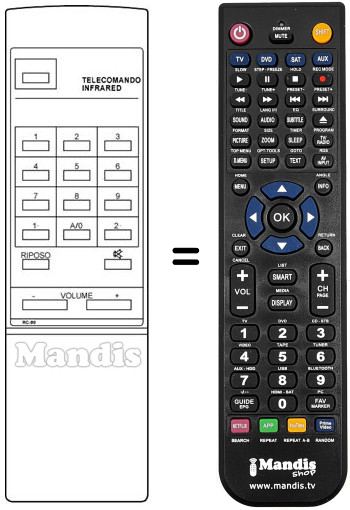 Télécommande qui remplace celle d'origine car elle possède les mêmes fonctions. Il ne s'agit pas d'une télécommande universelle mais d'une télécommande qui remplace celle d'origine. Vous recevrez la télécommande prête à fonctionner, vous n'aurez qu'à mettre les piles. Il n'est pas nécessaire de la programmer. Nous vous garantissons que la télécommande aura exactement les mêmes fonctions que celle d'origine.