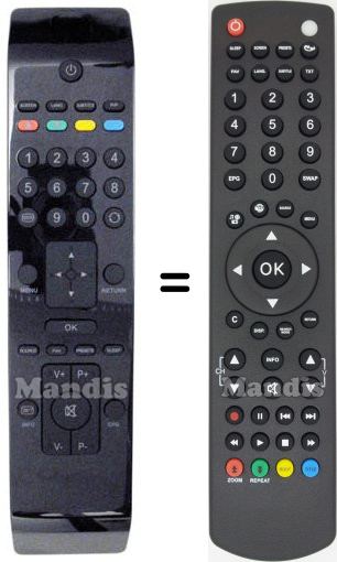 Power, Sleep, Screen, Presets, ↔, FAV, Lang, Subtitle, TXT, 1, 2, 3, 4, 5, 6, 7, 8, 9, 0, EPG, Swap, Photo/Music/Movie, World, Source, Menu, OK, Up, Down, Right, Left, C, Disp., Search Mode, Return, CH+, CH-, Vol+, Vol-, Info, Mute, Rec, Pause, I<<, >>I, <<, Play, Stop, >>, Red/↑/Zoom, Green/↓/Repeat, Yellow/Root, Blue/Title