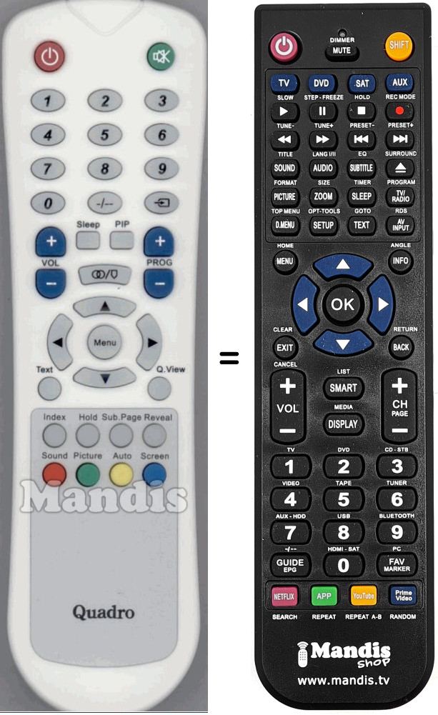 Il ne s'agit pas d'une télécommande universelle mais d'une télécommande qui remplace celle d'origine.