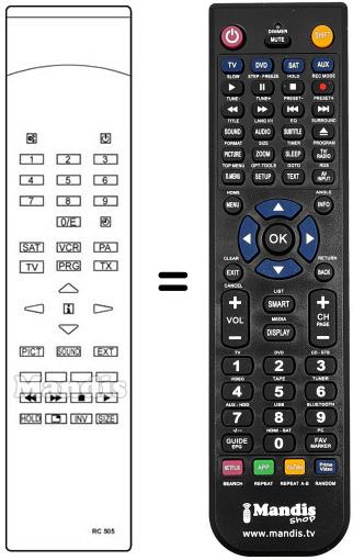 Télécommande qui remplace celle d'origine car elle possède les mêmes fonctions.