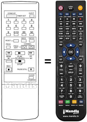 Télécommande qui remplace celle d'origine car elle possède les mêmes fonctions.