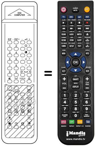 Télécommande qui remplace celle d'origine car elle possède les mêmes fonctions.