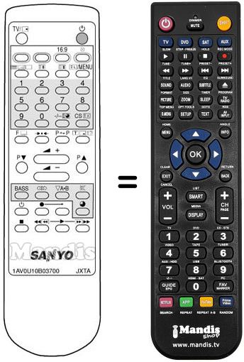 Télécommande qui remplace celle d'origine car elle possède les mêmes fonctions.