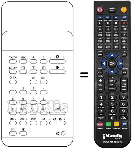 Télécommande qui remplace celle d'origine car elle possède les mêmes fonctions. Il ne s'agit pas d'une télécommande universelle mais d'une télécommande qui remplace celle d'origine. Vous recevrez la télécommande prête à fonctionner, vous n'aurez qu'à mettre les piles. Il n'est pas nécessaire de la programmer. Nous vous garantissons que la télécommande aura exactement les mêmes fonctions que celle d'origine.