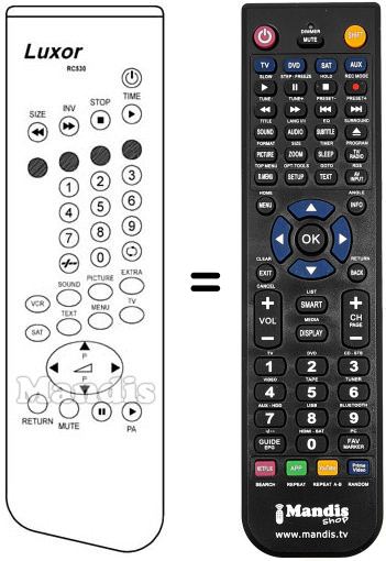 Télécommande qui remplace celle d'origine car elle possède les mêmes fonctions.