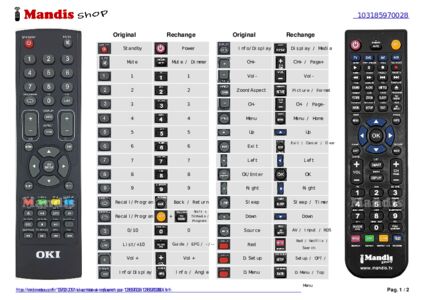 Un document est inclus pour vous aider à utiliser facilement la nouvelle télécommande, en indiquant la correspondance des boutons.