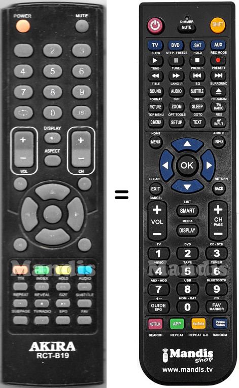 Cette télécommande remplace entièrement votre RCT-B19 et offre toutes les fonctions de l'originale.