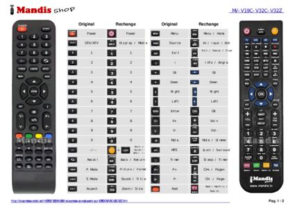 Un document est inclus pour vous aider à utiliser facilement la nouvelle télécommande, en indiquant la correspondance des boutons.