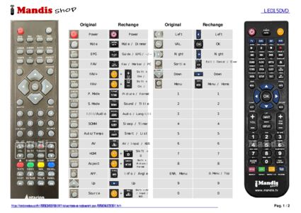Un document est inclus pour vous aider à utiliser facilement la nouvelle télécommande, en indiquant la correspondance des boutons.