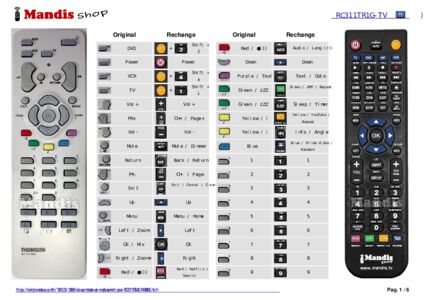 Un document est inclus pour vous aider à utiliser facilement la nouvelle télécommande, en indiquant la correspondance des boutons.