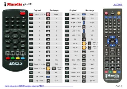 Accueil > Marques > Télécommandes AUDIOLA > Télécommande pour AUDIOLA NOT002