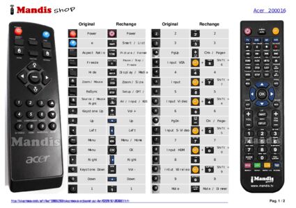 Un document est inclus pour vous aider à utiliser facilement la nouvelle télécommande, en indiquant la correspondance des boutons.