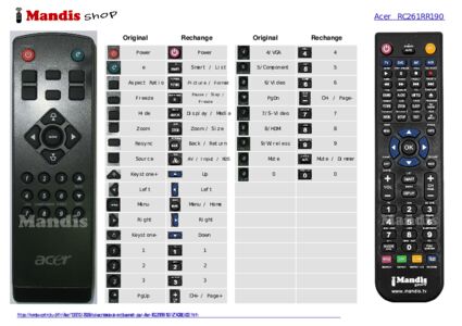 Accueil > Marques > Télécommandes Acer > Télécommande pour Acer RC261RR190