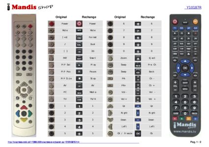 Un document est inclus pour vous aider à utiliser facilement la nouvelle télécommande, en indiquant la correspondance des boutons.