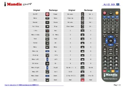 Un document est inclus pour vous aider à utiliser facilement la nouvelle télécommande, en indiquant la correspondance des boutons.