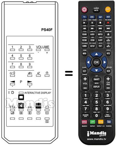 Télécommande qui remplace la télécommande d'origine PS 40 F car elle possède les mêmes fonctions.