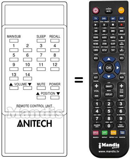 Télécommande qui remplace celle d'origine car elle possède les mêmes fonctions.
